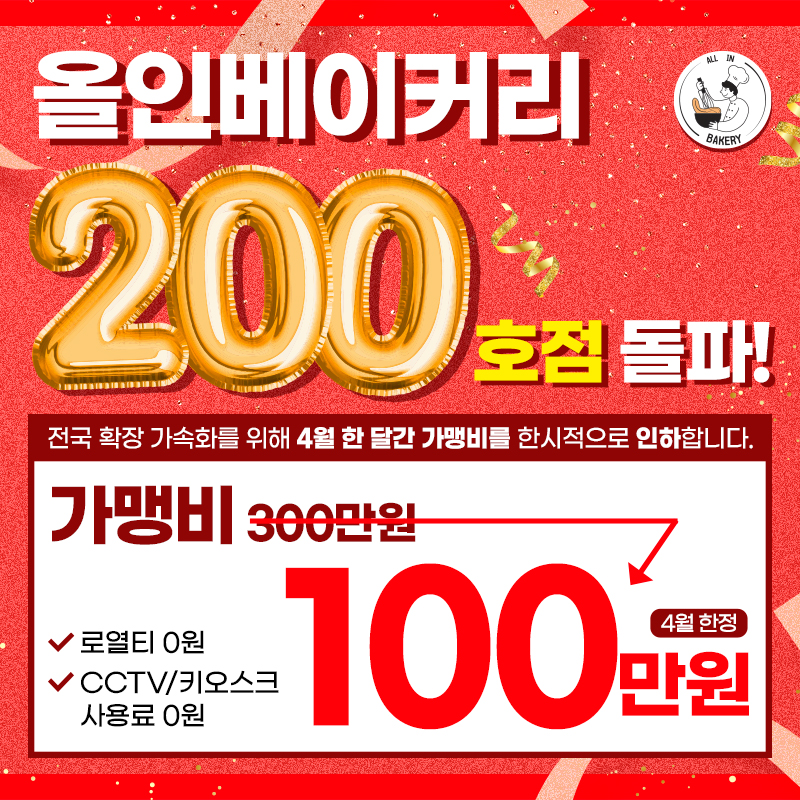 최/소/비/용 창업! 올인베이커리 150호점 돌파!